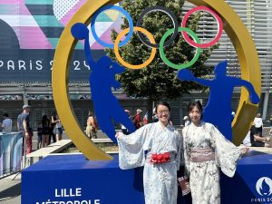 そして、職場での新たな出会いをきっかけに、今はバスケの応援に沼ってます!なんとなく誘われて観戦に行ってみただけなのに、日本中そしてパリオリンピックにも応援に行くほど。毎試合、推しの活躍に喜び、チームの躍動に心動かされ、「ココロ、たぎる。」瞬間が毎回です。ぜひ一度足を運んでみてください。そして、この沼のおかげで、アウェイにも直接応援に行ってみよう!と思いたち、今まで行ったことのなかった地域を巡り、美味しいご飯と少しの観光を楽しみ、各チームのブースターの方や地域の方から温かな優しさを毎回のようにいただく、観戦旅行がいまの楽しみです。行ってみたいの気持ちでチケットを取ったオリンピックは、やっぱりすごいの一言に尽きます。観客席が一体になった応援や世界各国の人々が敵味方関係なく競技に熱狂する様子は圧巻でした。パリはとても素敵な場所だけど、行ったからこそ分かる地域の陰の部分を知ることができたし、浴衣を着て応援に行ったら現地の方との撮影ラッシュで、日本が愛されていることも実感しました。社会人になってもまだまだ私の世界がどんどん広がっているのは、バスケのおかげです。