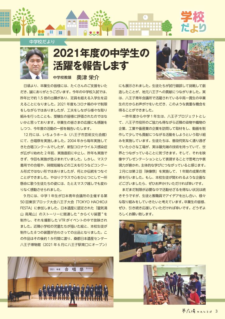 中学校だより:2021年度の中学生の活躍を報告します 2023.04.10 関連記事 Post Share Hatena Pocket RSS feedly Pin it この記事のタイトルとURLをコピーする 高等学校だより:コロナ禍で工夫する学び 前の記事 校長 ごあいさつ 次の記事