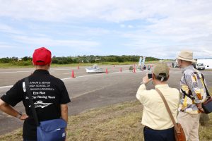 10月6日、南紀白浜空港旧滑走路にて「2024 白浜エコカーチャレンジ」が開催されました。今回は、中学・高等学校の自動車部がレジェンドクラスにエントリーし、2日間の合計8時間耐久レースに挑戦しました。使用した車両は大学の2号機(プラクティス)にあたる車体です。全ドライバーが初レースということもあり、顧問の島田副校長もレースの様子を見守りました。また、今回、初めて中学生の部員もドライバーとして参加し、チームメンバーと切磋琢磨しながら力強く走り抜きました。